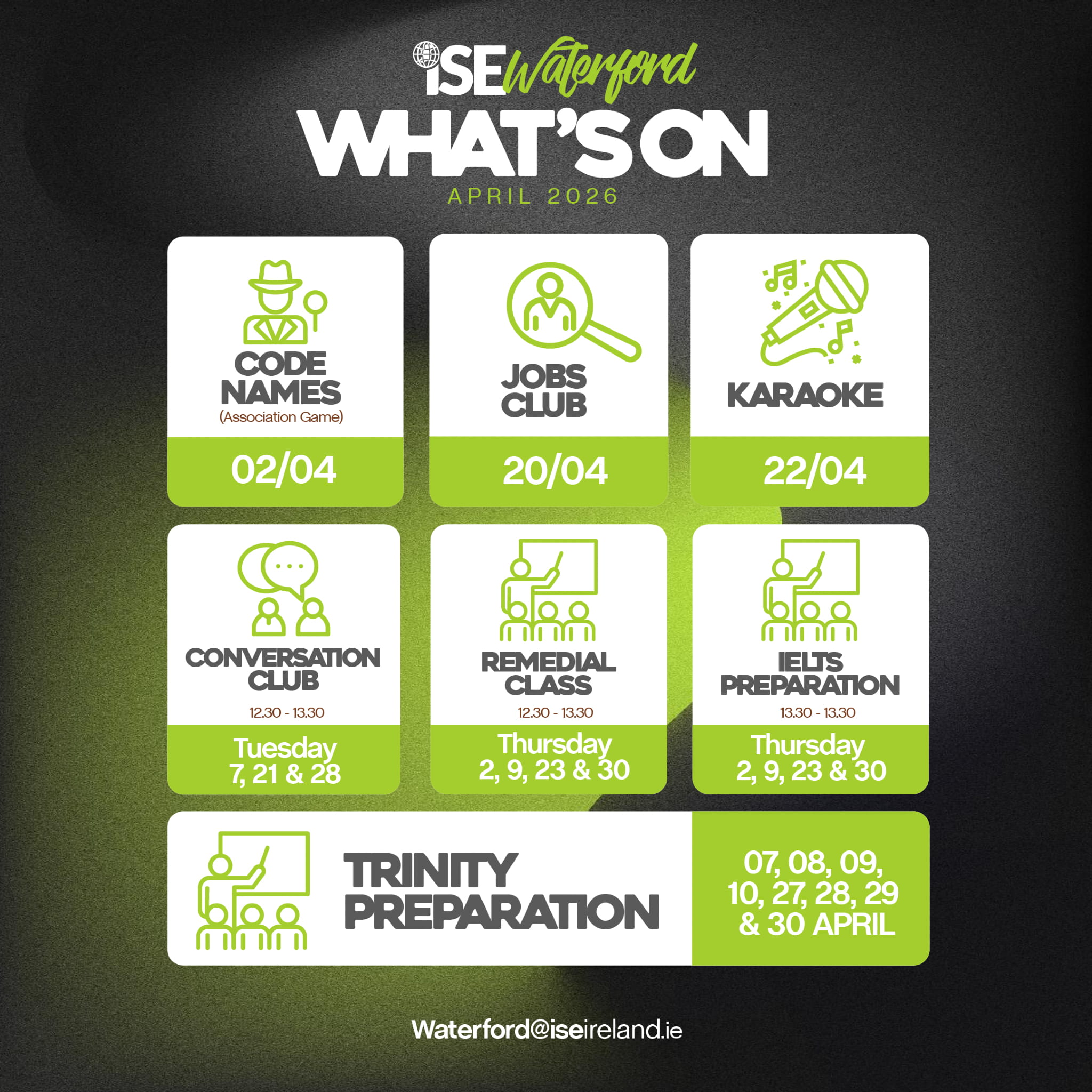 ISE Waterford – A peaceful yet central campus with easy access to shops, cafes, and city attractions. Walk or cycle to class in this well-connected location.